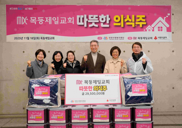 목동제일교회 따뜻한 의식 페이지 정보 작성자 양천사랑복지재단 작성일2025-11-19 13:41 조회13회 댓글0건 관련링크 이전글 다음글 목록 본문 2025년 11월 18일 목동제일교회에서 따뜻한 의식주 행사가 진행되었습니다. 따뜻한 의식주는 9년째 이어져온 관내 저소득가정 월동지원 행사로 매년 방한복(의), 김치(식), 전기매트(주)를 지원하고 있습니다. 올 해는 방한복 30명, 김치 630명, 전기매트 100명, 총 760명을 지원하였습니다. 김치는 성도분들께서 자원봉사로 직접 김장을 해주셨습니다. 추운날씨에도 고생해주신 목동제일교회 목사님들과 성도분들께 감사드립니다. 댓글목록 등록된 댓글이 없습니다. 이전글 다음글 목록