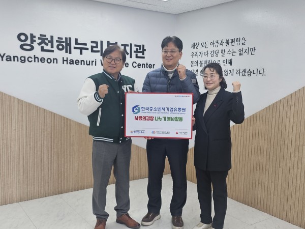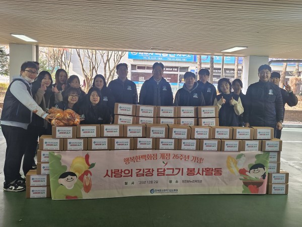 2025년 12월 2일 한국중소벤처기업유통원 임직원들이 사랑의 김장나누기 봉사활동을 진행하였습니다. 이번 김장 봉사활동은 양천해누리복지관에서 주관해 주셨습니다. 날씨가 갑자기 추워져서 걱정했는데 다행히 봉사의 온기로 참여해주신 모든분들이 즐겁게 김장을 해주셨습니다. 5kg, 80박스를 만들었고 김치는 관내 저소득 장애인가정에 지원될 예정입니다. 한국중소벤처기업유통원 임직원들과 양천해누리복지관 직원분들에게 감사드립니다.