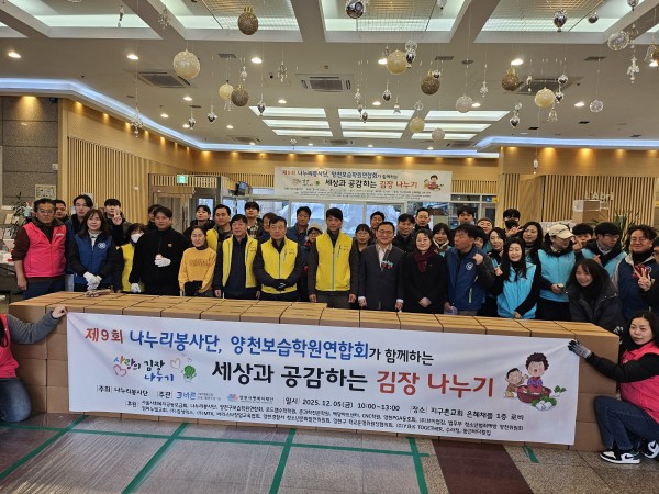 2025년 12월 5일 나누리봉사단과 양천보습학원연합회가 함께하는 세상과 공감하는 김장 나누기 행사가 있었습니다. 올해 9회를 맞이하는 김장나눔행사는 사회적협동조합바른에서 주관하였습니다. 만들어진 김치는 5kg, 150여개로 저소득장애인가정과 장애인시설에 배분되었습니다. 후원해주시고 봉사해주신 나누리봉사단과 양천보습학원연합회, 행사를 주관해주신 사회적협동조합바른에 감사드립니다.