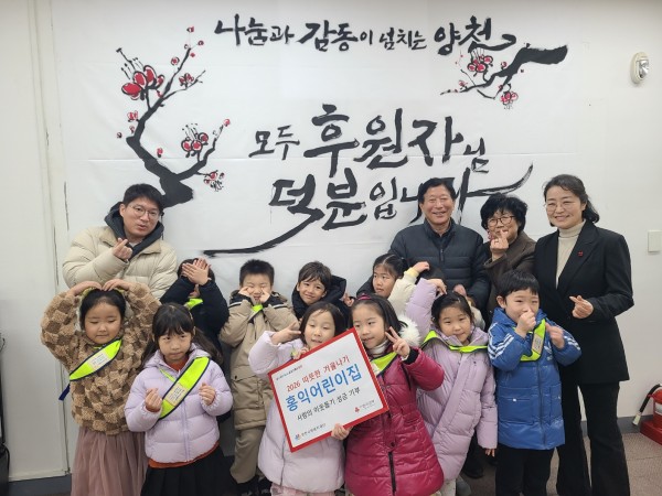 홍익어린이집 따뜻한 겨울나기 성금 기부 페이지 정보 작성자 양천사랑복지재단 작성일2025-12-12 10:40 조회10회 댓글0건 관련링크 이전글 다음글 목록 본문 2025년 12월 11일 홍익어린이집에서 양천사랑복지재단에 따뜻한 겨울나기 성금 17만원을 기부해주셨습니다. 홍익어린이집 아이들이 김장을 준비했고 판매수익금을 어려운 이웃들에게 기부해 주었습니다. 홍익어린이집 선생님들과 아이들에게 감사드립니다. 댓글목록 등록된 댓글이 없습니다. 이전글 다음글 목록