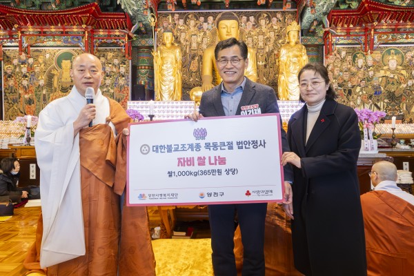 대한불교조계종 목동큰절 법안정사 자비쌀 나눔 페이지 정보 작성자 양천사랑복지재단 작성일2025-12-24 17:00 조회22회 댓글0건 관련링크 이전글 다음글 목록 본문 2025년 12월 21일 대한불교조계종 목동큰절 법안정사에서 후원품 전달식(쌀1,000kg)이 있었습니다. 법안정사 신도님들과 스님들께 감사드립니다. 댓글목록 등록된 댓글이 없습니다. 이전글 다음글 목록