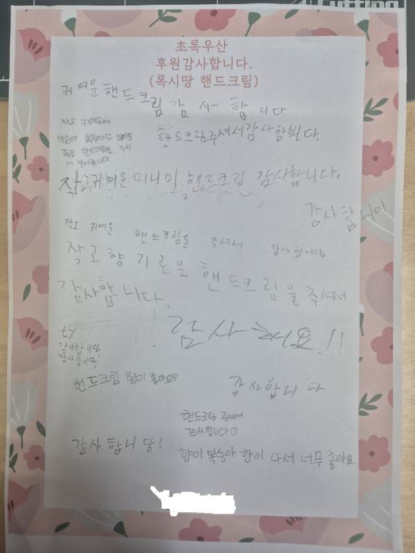 3. 후원물품 대상자 전달사진(판넬 및 물품이 나오게) : 5장 이상