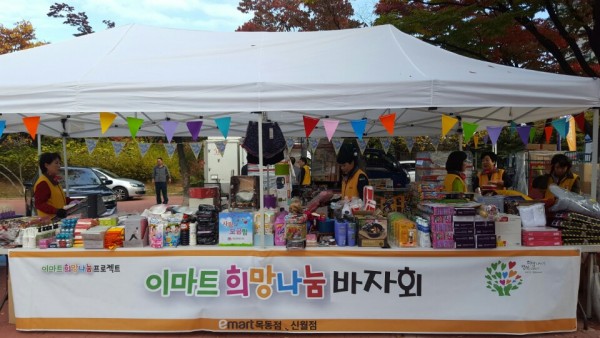 | \r\n 지난 22일 토요일, 목동 파리공원에서 양천사랑복지재단(이사장 김동엽)은 이마트 목동점·신월점 임직원 및 주부봉사자들과 함께 러브플리마켓에 참여하여 희망나눔 바자회 부스를 운영하였으며, 총 5,720,770원의 판매금액을 모았습니다. 판매금액 전액은 “엄마를 부탁해” SOS어린이마을 은퇴어머니 주거지원사업에 사용됩니다. |