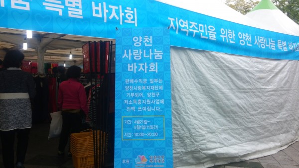 21일 양천문화회관 분수광장 앞에서 양천 사랑나눔 바자회가 시작되었습니다.