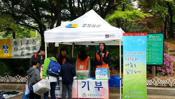 지난 23일 토요일 양천공원에서 두 번째 2016 알뜰가정 벼룩시장이 열렸습니다. 양천사랑복지재단(이사장 김춘석)은 청소년 자원봉사자와 함께 기부 장려 캠페인을 하였습니다. 주민 여러분께서 알뜰가정 벼룩시장의 판매 수익금 10%를 기부해 주셔서 총 155,200원의 성금이 모금되었습니다. 모금된 성금은 양천구 복지 사각지대의 이웃을 위한 복지기금에 보태어 사용될 예정입니다.