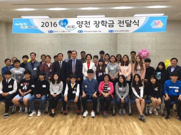 -5월- 2016 옳소양천 장학금 전달식 페이지 정보 작성자 양천사랑 작성일2016-05-04 09:43 조회674회 댓글0건 관련링크 이전글 다음글 목록 본문 \r\n지난 2일 양천구자원봉사센터에서 옳소양천 장학금 전달식이 진행되었다. 파리바게트 신정네거리역점(대표 이근배)의 하루매출 기부의 날 성금으로 조성된 장학금 15,000,000원은 대학생 12명, 고등학생 15명, 중학생 10명 총 37명에게 전달되었다. 댓글목록 등록된 댓글이 없습니다. 이전글 다음글 목록