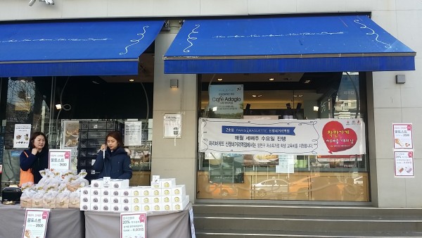 「하루매출 기부의 날」제 2호점인 파리바게뜨 신정네거리역 지점은 매월 셋째주 수요일에 기부캠페인을 실시하고 있습니다.