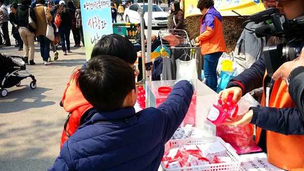 지난 3월 26일 양천공원에서는 2016년 봄을 맞이하며 알뜰가정 벼룩시장이 열렸습니다. 양천사랑복지재단(이사장 김춘석)에서는 자원봉사자들의 도움을 받아 기부방법을 안내하며 사랑의 열매 모양의 저금통을 나누어 주는 행사를 진행 하였습니다. 벼룩시장에 참가한 여러 주민들께서 판매액의 10%를 자율적으로 기부해 주셔서 총 190,010원의 금액이 기부되었습니다. 기부금은 양천구 저소득 이웃에게 사용될 예정입니다.