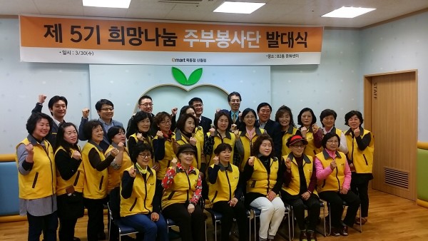 -3월- 이마트 주부봉사단 5기 발대식 페이지 정보 작성자 양천사랑 작성일2016-04-06 15:57 조회630회 댓글0건 관련링크 이전글 다음글 목록 본문 지난 3월 30일 이마트 목동점 문화센터에서 이봉선 양천구청 복지교육국장, 서영호 양천사랑복지재단 사무국장, 김대규 이마트 목동점장, 윤주학 이마트 신월점장 등이 참석한 가운데, 2016 희망나눔 프로젝트를 이끌어갈 이마트 주부봉사단 5기 발대식이 진행되었다. 댓글목록 등록된 댓글이 없습니다. 이전글 다음글 목록