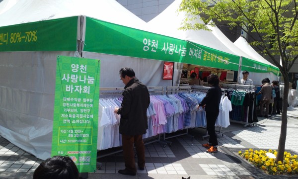 양천사랑복지재단(이사장 김춘석)은 저소득 주민 돕기 행사 일환으로 4월 23일부터 5월 2일까지 11일간 오렌지 팩토리가 개최하는 양천 사랑나눔 바자회를 진행하였습니다. 행사 매출액의 일부는 양천사랑복지재단을 통하여 이웃돕기 성금으로 기부되어, 양천구 저소득층을 위해 쓰일 예정입니다.