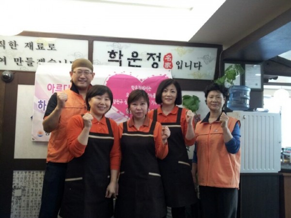 신정7동 한정식 전문점 학운정(대표 김현석)은 양천사랑복지재단(이사장 김춘석)과 함께 4월 28일 하루매출 기부의 날 9호점 행사를 진행하고, 당일 매출액의 20%인 300,000원을 양천사랑복지재단에 기부하였습니다. 당일 매장을 찾아주신 고객여러분과 3월에 이어 지속적으로 이웃사랑에 동참해주신 학운정 관계자 여러분께 감사드립니다.