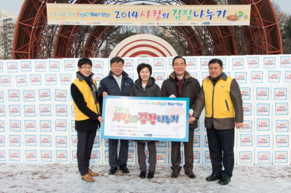 양천사랑복지재단(이사장 김춘석)이 주최한 「2014년 사랑의 김장나누기」행사가 지난 12월 22일, 양천구, 서울사회복지공동모금회, 티센크루프엘리베이터코리아, 이마트 목동점, 신월점의 후원으로 양천공원에서 진행되었습니다. 추운날씨에도 불구하고 후원업체 임직원 및 주부봉사단 등 총 90여명이 자원봉사자로 참여하였습니다. 어려운 이웃들을 위하여 맛있는 김치를 전달해 주셔서 감사드립니다.