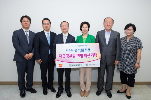 7월 30일 오전, 양천사랑복지재단(이사장 설종순)의 연계로, 다국적 제약사 GSK(GlaxoSmithKline)와 이대목동병원(병원장 유권)은 ‘저소득 청소년 자궁경부암 예방 백신 무료 접종 사업’을 진행하기에 앞서, 양천구청 5층 회의실에서 자궁경부암 예방 백신 기탁식을 가졌습니다.