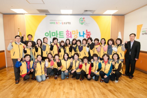 지난 3월 12일, 양천사랑복지재단(이사장 설종순)은 양천구, (주)이마트 목동점(지점장 정경아), 신월점(지점장 유무용)과 지역 사회공헌 활동을 주요 내용으로 하는 2014 희망나눔 프로젝트 협약을 체결하였습니다. 본 행사는 이마트 주부봉사단 30여명의 발대식과 함께 진행되었습니다. 지속적인 이웃사랑 나눔실천에 감사드립니다.