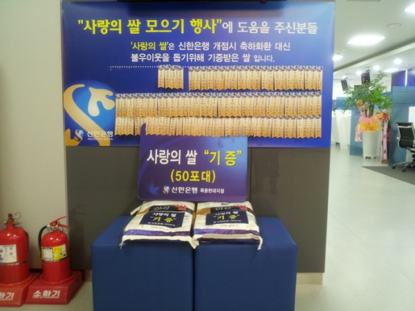 신한은행 목동현대백화점지점, 사랑의 쌀 기탁 페이지 정보 작성자 양천사랑 작성일2014-04-10 14:27 조회676회 댓글0건 관련링크 이전글 다음글 목록 본문 지난 4월 4일, 신한은행 목동현대백화점지점은 양천사랑복지재단을 통하여 쌀(10kg) 50포를 기탁하였습니다. 이는 양천구 관내 복지사각지대에 놓인 어려운 이웃들에게 전달될 예정입니다. 이웃사랑 나눔실천에 동참하여 주시어 감사드립니다. 댓글목록 등록된 댓글이 없습니다. 이전글 다음글 목록