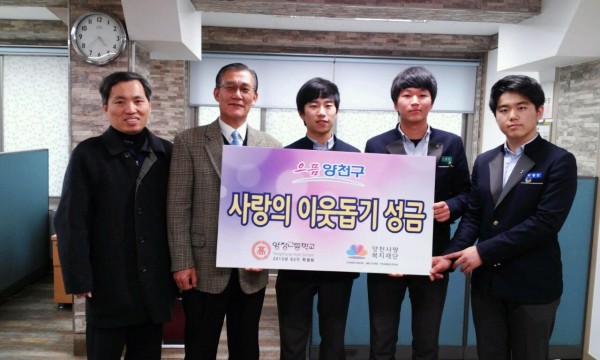 양정고등학교, 사랑의 이웃돕기 성금 기탁 페이지 정보 작성자 양천사랑 작성일2013-12-17 18:55 조회554회 댓글0건 관련링크 이전글 다음글 목록 본문 12월 17일, 양정고등학교(교장 김창동)는 사랑의 이웃돕기 성금 500,000원을 양천사랑복지재단(이사장 설종순)에 기탁하였습니다. 정성이 가득한 후원에 감사드리며, 앞으로도 우리 재단에 많은 관심과 성원 부탁드립니다. 댓글목록 등록된 댓글이 없습니다. 이전글 다음글 목록