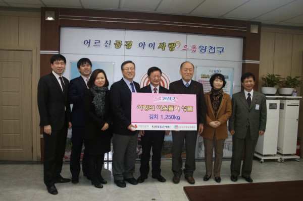 목동힘찬병원(원장 이수찬)는 지난 12월 9일, 직원들이 직접 담근 김치(1,250kg)를 양천사랑복지재단(이사장 설종순)에 전달하였습니다. 전달받은 김치는 올겨울 어르신들이 맛있게 드시기를 바라는 마음에서 양천구 내 경로식당 5곳에 나누어 드렸습니다. 목동힘찬병원의 따뜻한 정성에 감사드립니다.