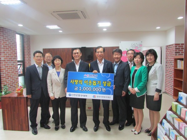 신한은행 강서본부, 독거어르신 54명에게 한가위 명절 선물 지원 페이지 정보 작성자 양천사랑 작성일2013-09-17 14:41 조회669회 댓글0건 관련링크 이전글 다음글 목록 본문 신한은행 강서본부(본부장 조욱제)는 9월 12일 양천사랑복지재단(이사장 설종순)에 성금 1,000,000원을 기탁하였다.이 성금은 명절 지원사업의 일환으로 식품류의 선물 세트를 구매하였고, 양천어르신상담센터 이용 독거어르신 54명에게 전달하였다. 댓글목록 등록된 댓글이 없습니다. 이전글 다음글 목록